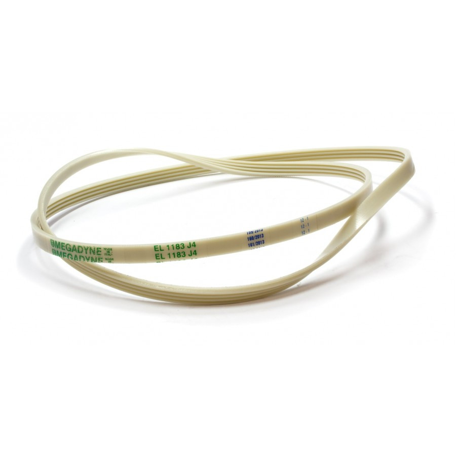 Поликлиновый приводной ремень 1183 J4 EL стиральных машин Siltal, Rolsen. Ремень привода для стиральных машин Силтал, Ролсен. Примерная длина в натянутом состоянии: 1183 мм. Профиль: поликлиновый (ручейковый) J, 4 ребра - расстояние между клиньями 2.34 мм, эластичный, белый. Ремень стиральной машины 36530100, BLJ155UN, BLJ154UN.